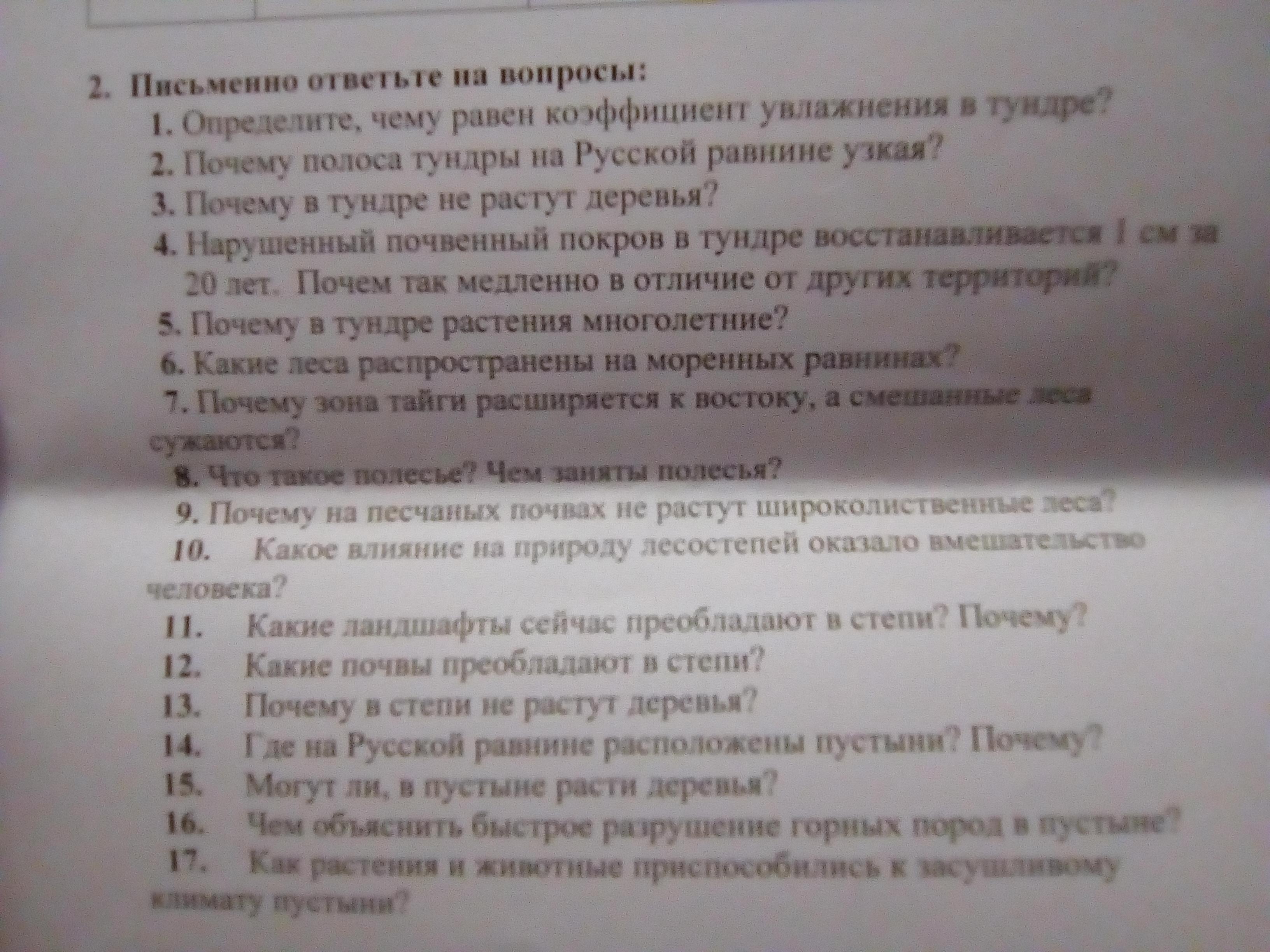 №7:Потому что климат более прохладный, и условия жизни для данных лесов не позволяют им находится на востоке!