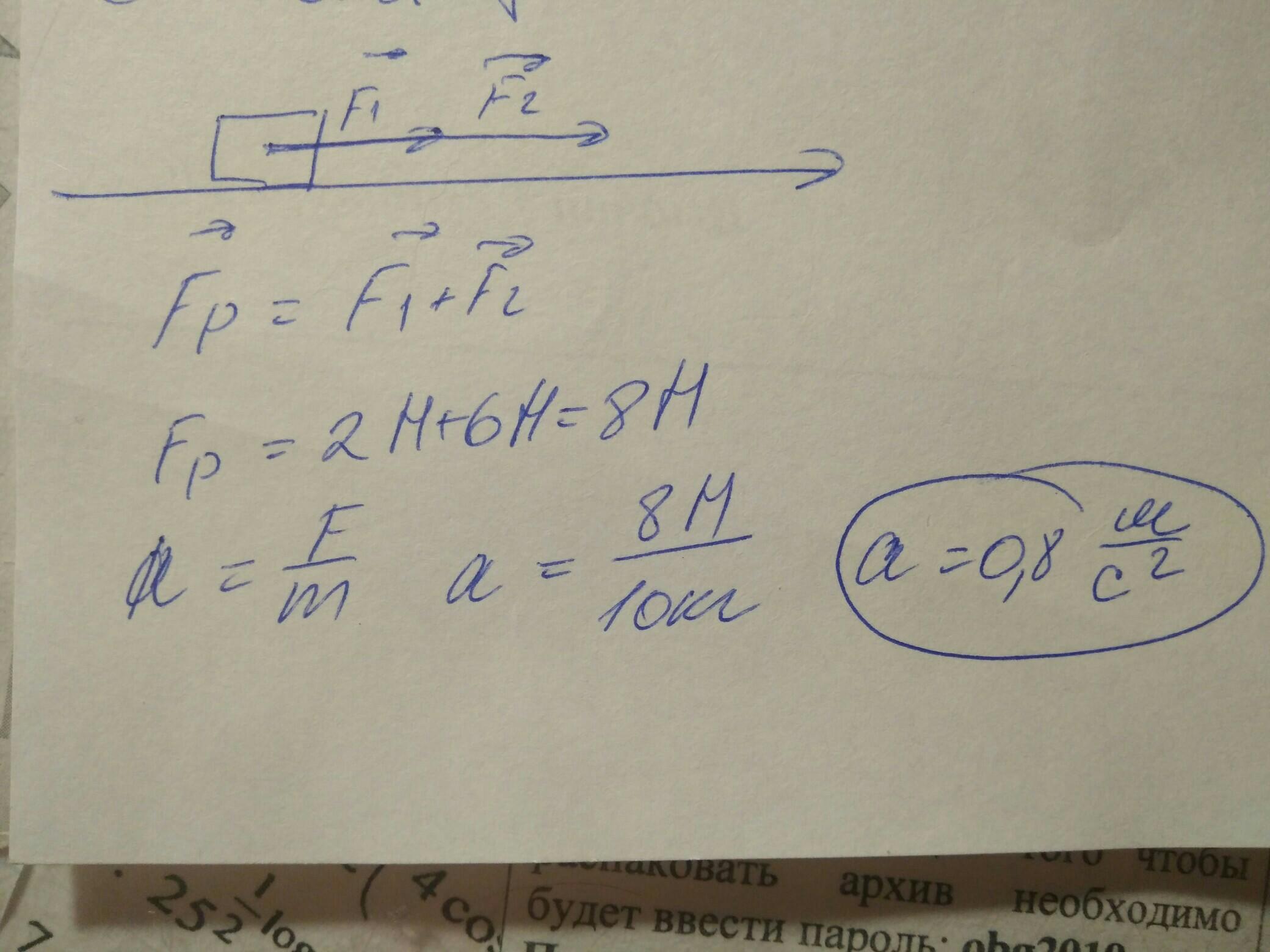 Допоможіть розв'язати задачу з фізики 9 клас. На тіло в горизонтальному напрямі діють дві сили 2Н і 6Н.Знайти прискорення тіла якщо маса 10 кг.