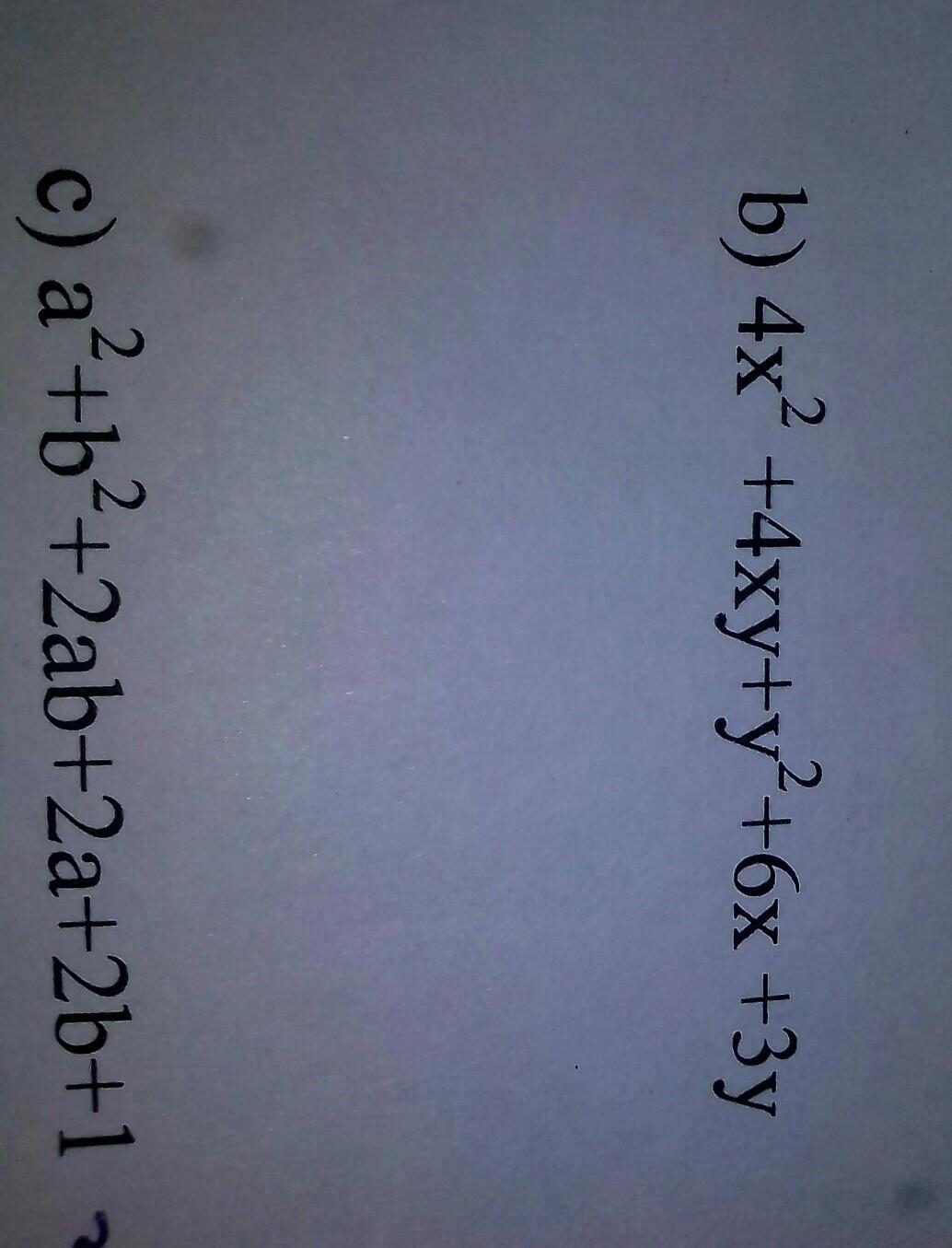 4x^2+4xy+y^2+6x+3y=(2x+y)^2+3cdot(2x+y)=(2x+y)(2x+y+3)\\a^2+b^2+2ab+2a+2b+1=(a+b)^2+2(a+b)+1=(a+b+1)^2