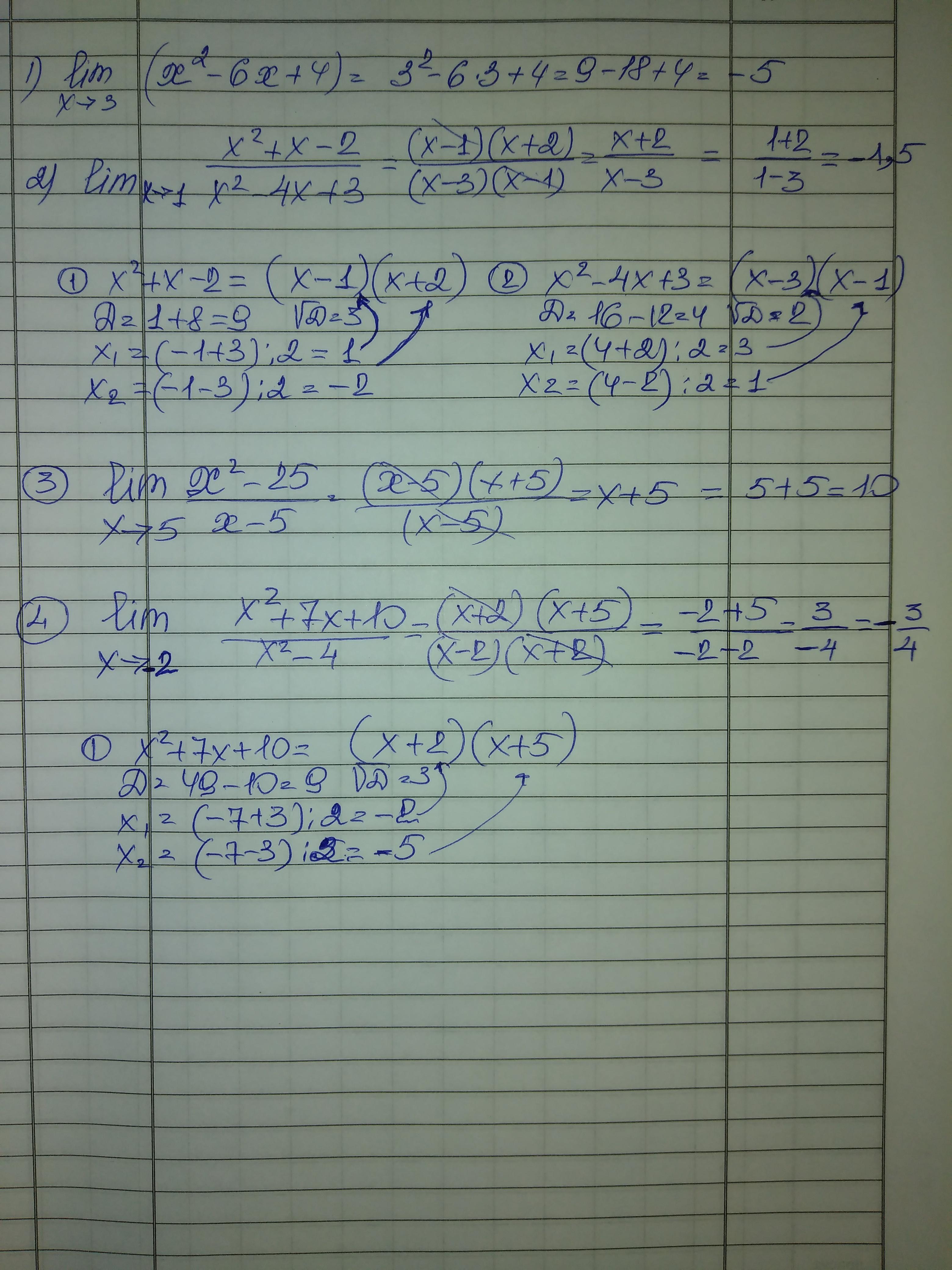 Подставляем число, к которому стремится икс. Если получается ноль делить на ноль - пытаемся углядеть формулу сокращенного умножения или разложить квадратное уравнение на скобки. Тогда что-то сократится и ноль на ноль пропадет.