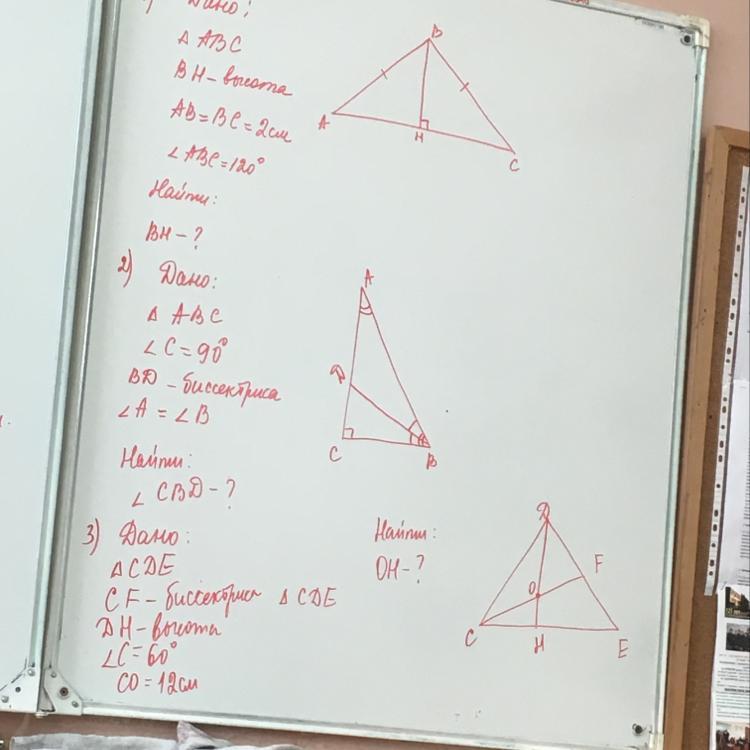 номер 3) если СF - биссектриса, то она делит угол С пополам отсюда следует что , угол ОСН = 30 градусов