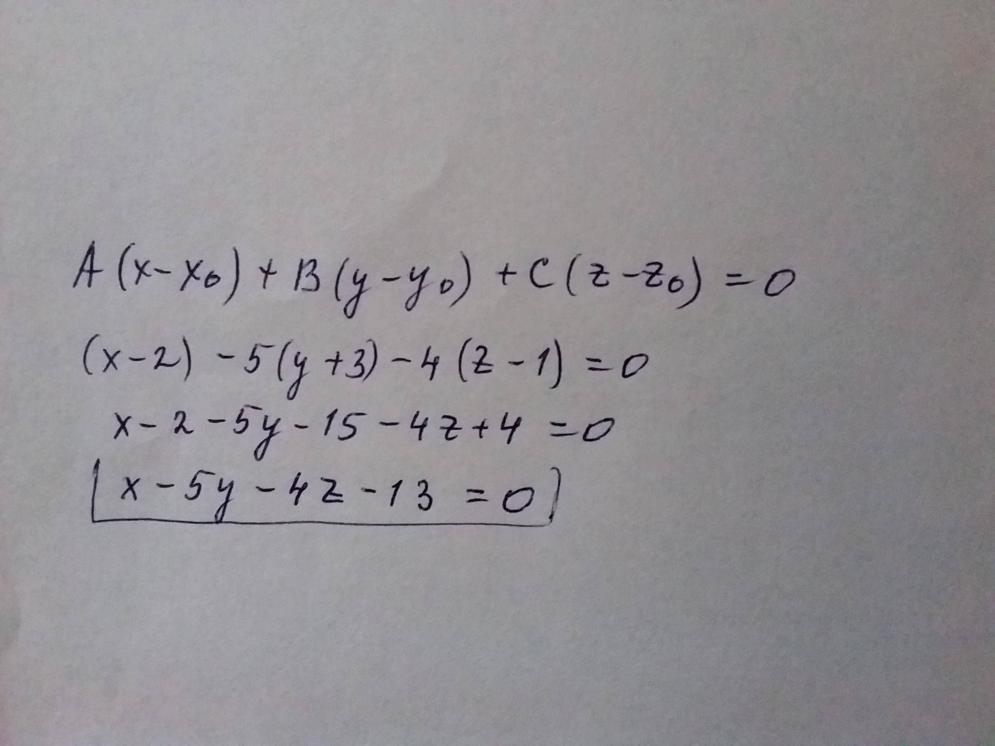 Составить уравнение плоскости, проходящий через точку P(2,-3,1), и имеющий нормальный вектор n( 1,-5,-4)