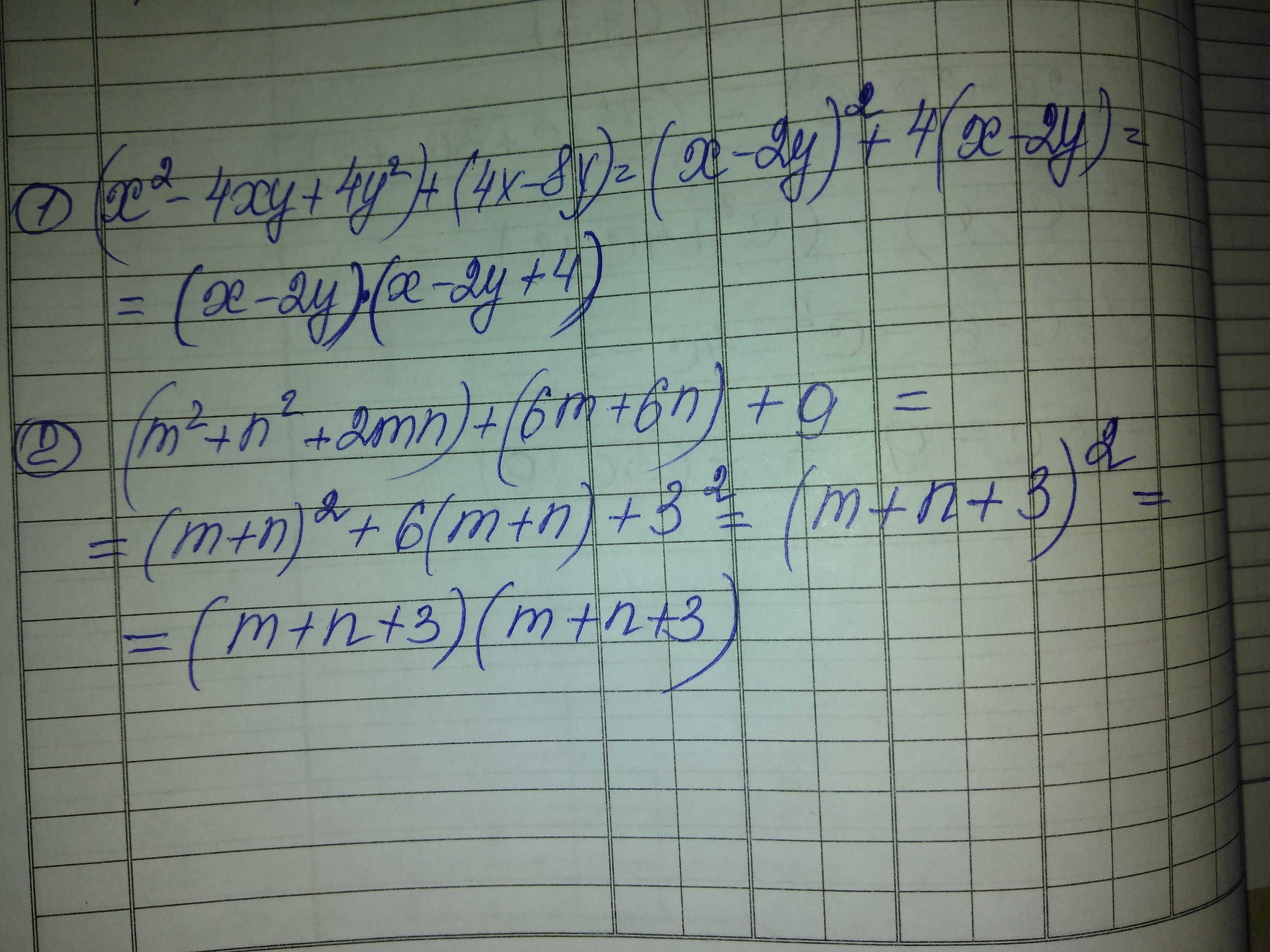 1) х^2-4ху+4у^2+4х-8у