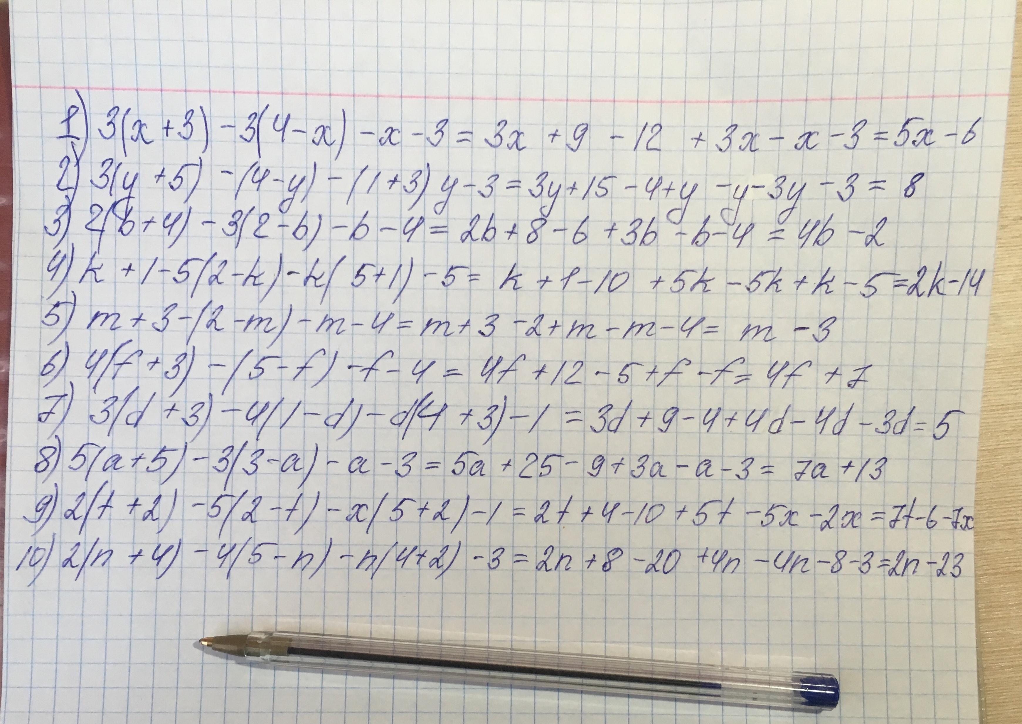 9. 2(t+2) – 5(2-t)-х(5+2)-1