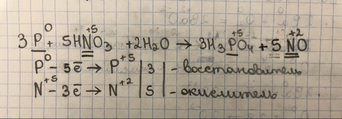 3) 3P+5HNO₃+2H₂O=3H₃PO₄+5NO