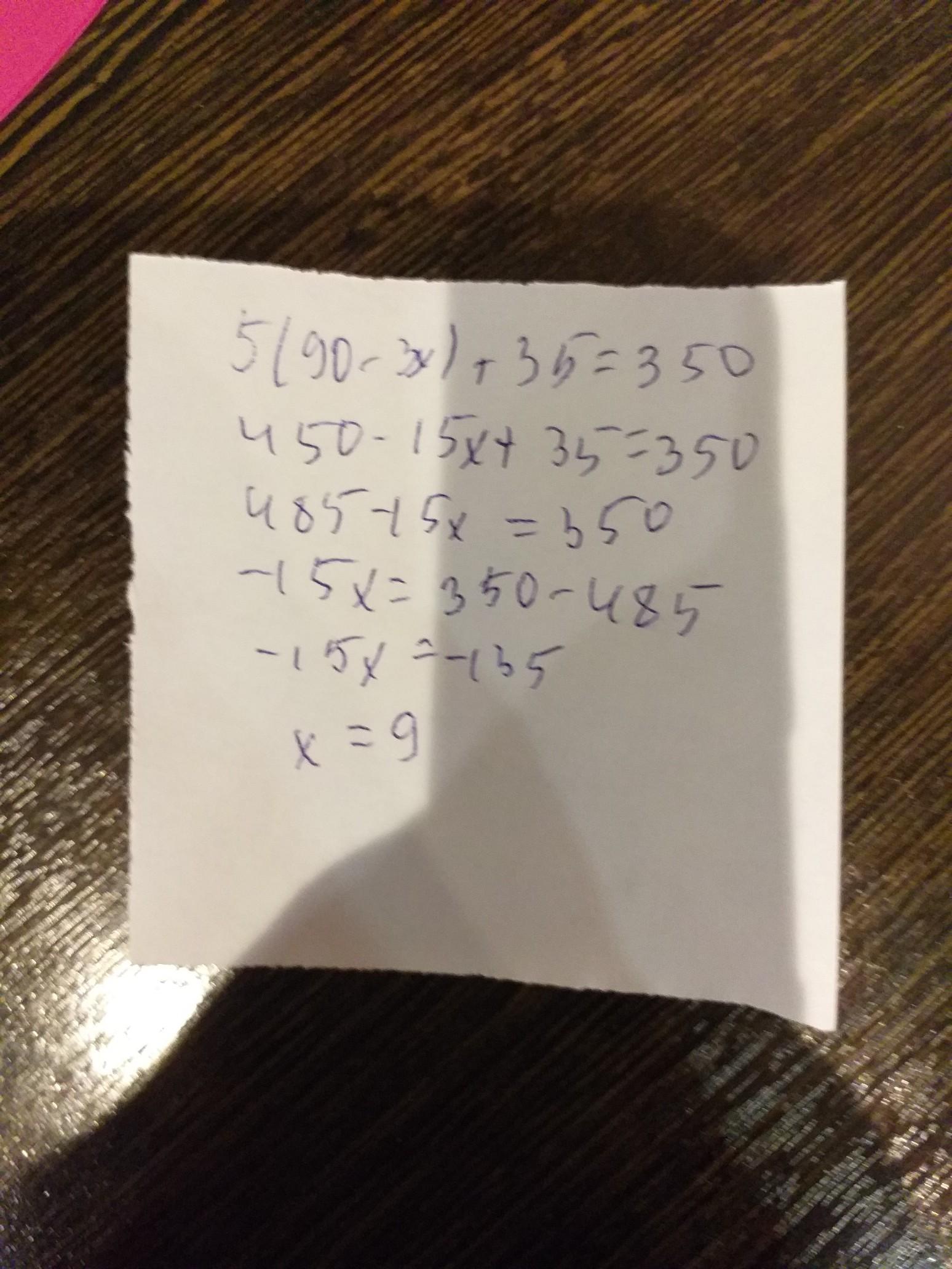 5*(90-3x)+35=350