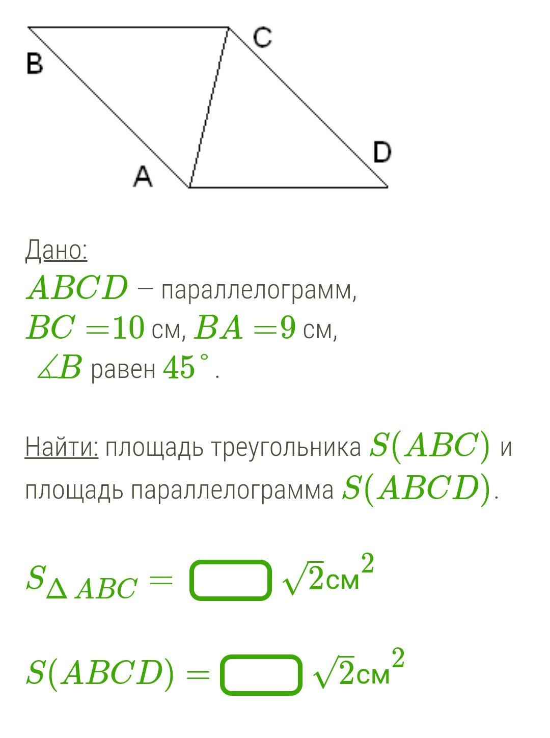 а площадь параллелограмма в два раза больше, т.е. 45√2 см².