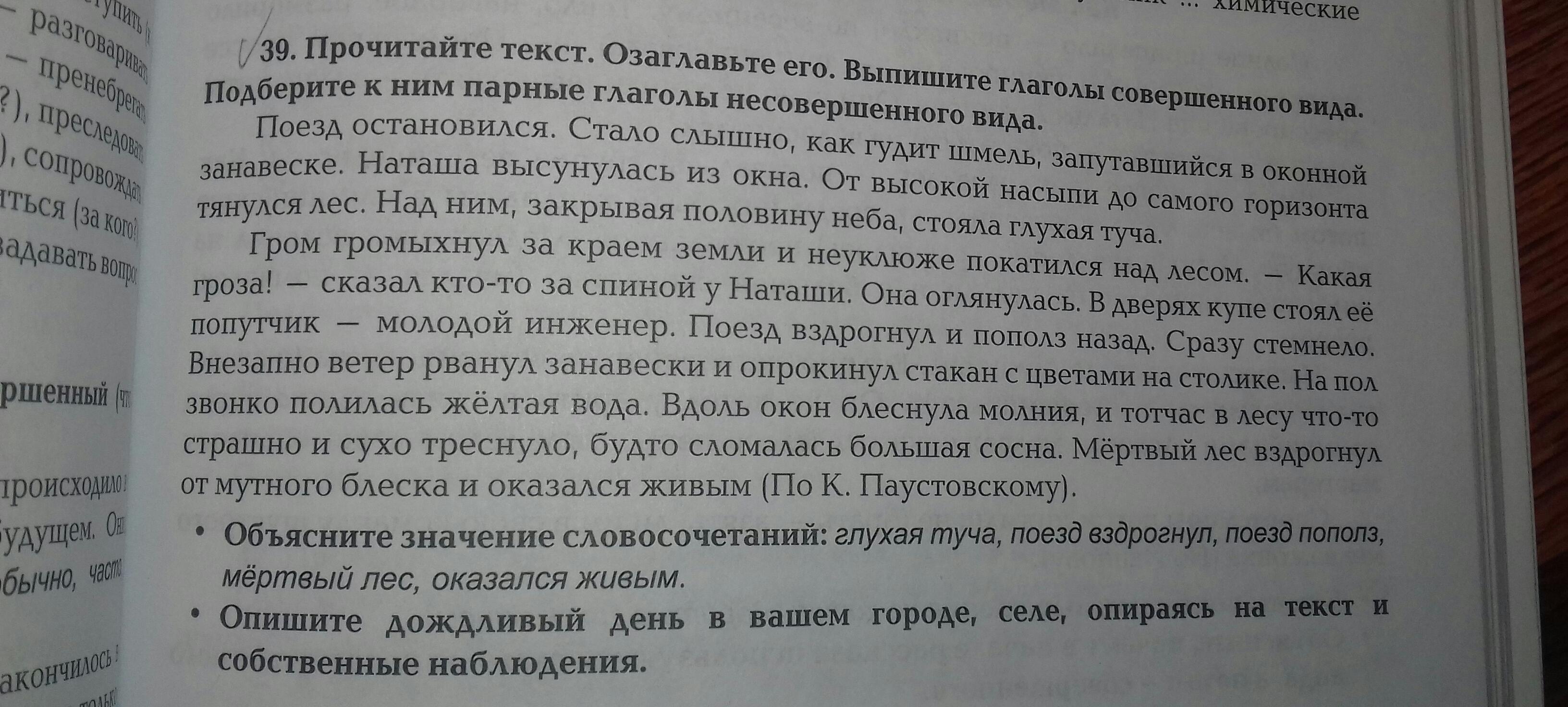 Озаглавьте его выпишите глаголы совершенного вида. Подберите к ним парные глаголы несовершенного вида.