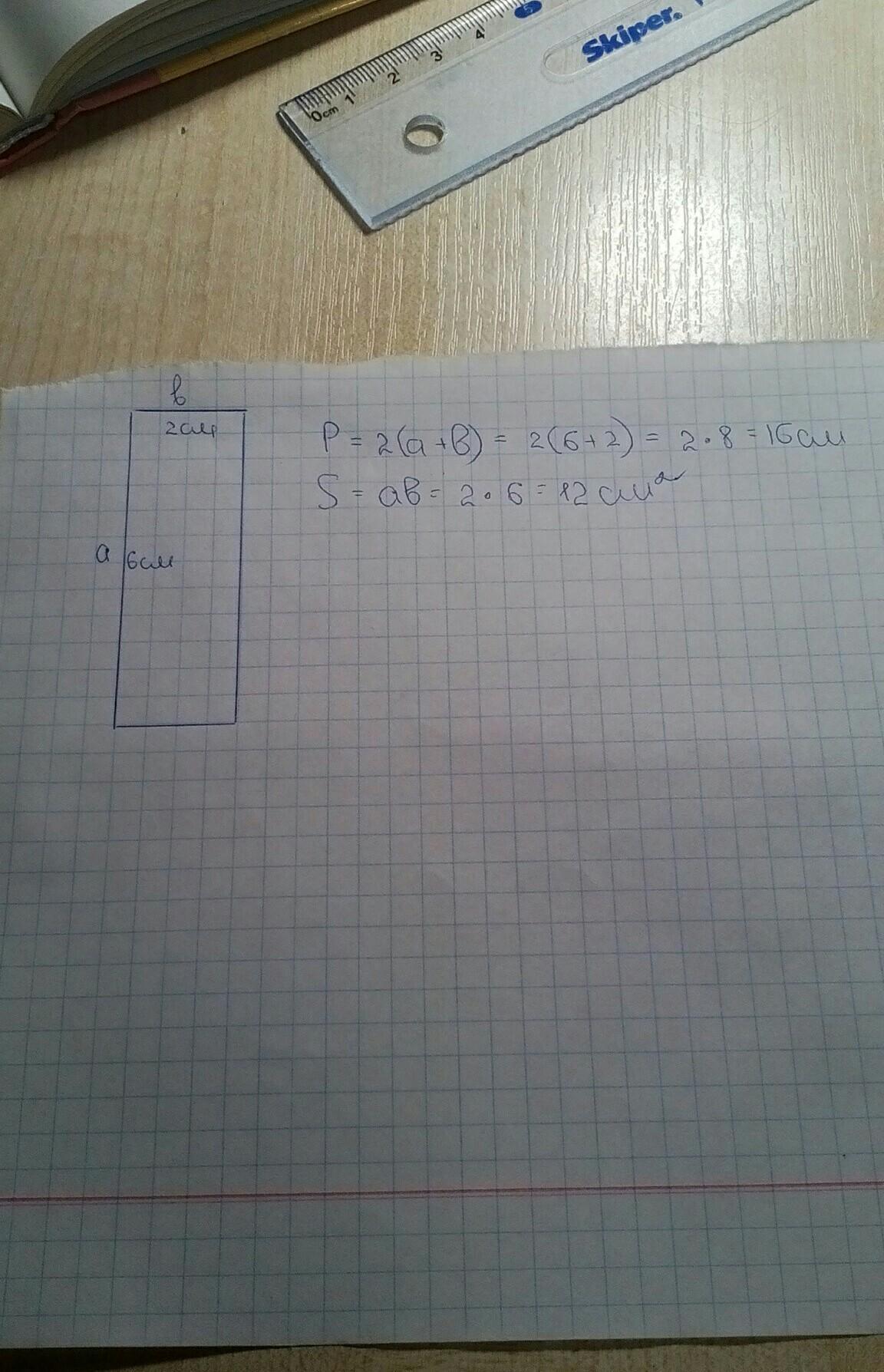 Ответ: длина 9 см ширина 3 см, площадь 27 см2, периметр 24 см