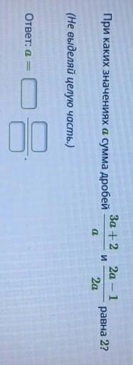 frac{3a+2}a+frac{2a-1}{2a}=2\2(3a+2)+2a-1=4a\6a+4+2a-1=4a\4a=-3\a=-frac34\a=-0.75