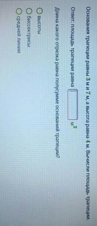Sтрапеции = (3м + 7м)/2 * 4 м = 20 м².