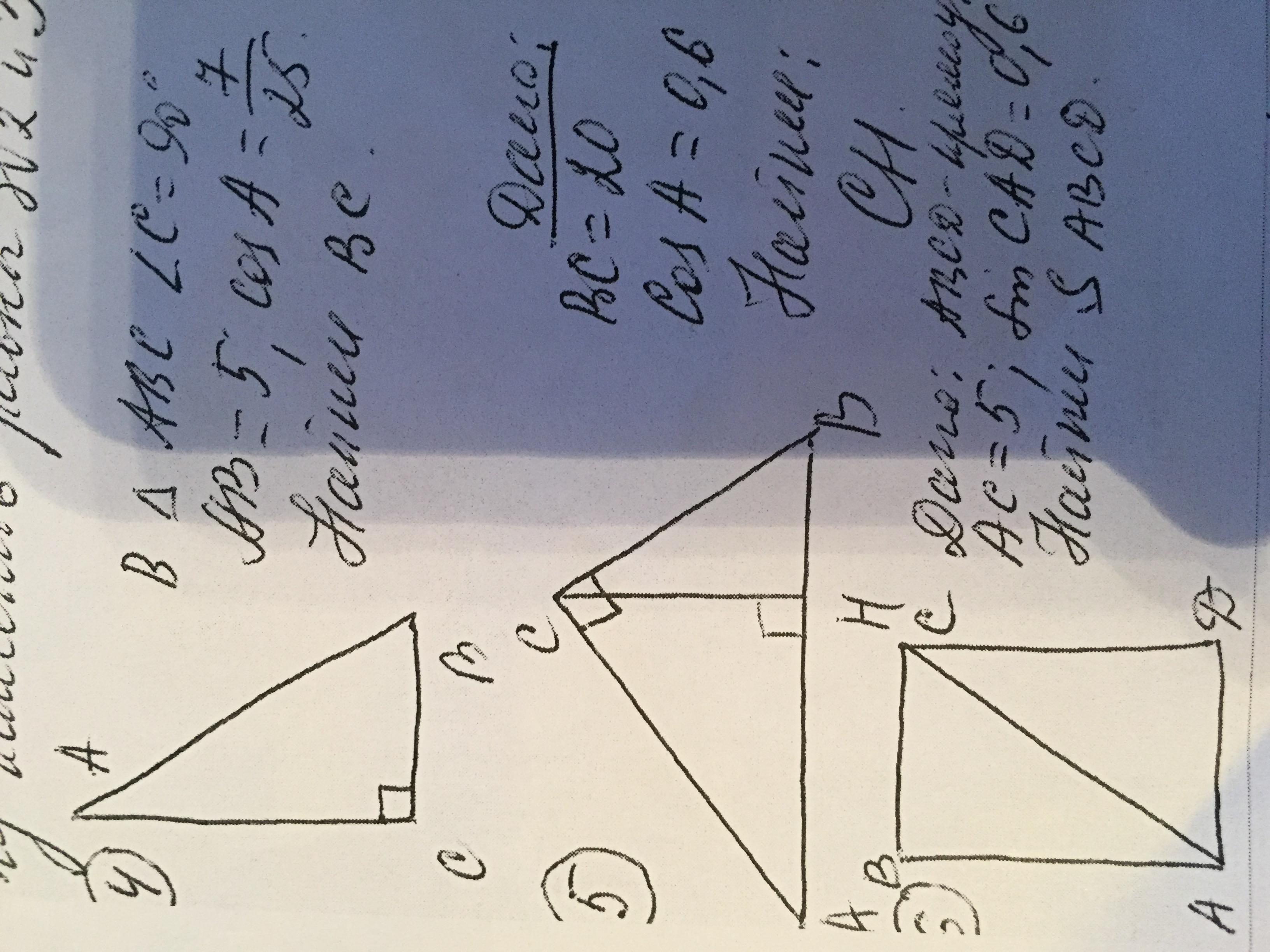 2) По свойству прямоугольного треугольника sinB=cosA=0,6