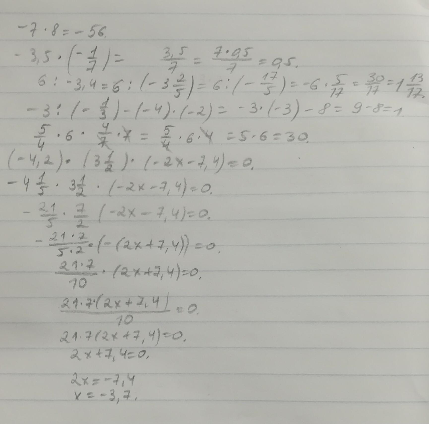 урав. (-4,2)*(3 ½)*(-2х-7,4)=0. Решите всё пж по действиям(кроме урав.) Срочно! 32б. Заранее огромное спс