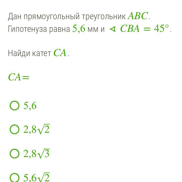Т.к угол равен 45гр, то треугольник ABC равнобедренный,