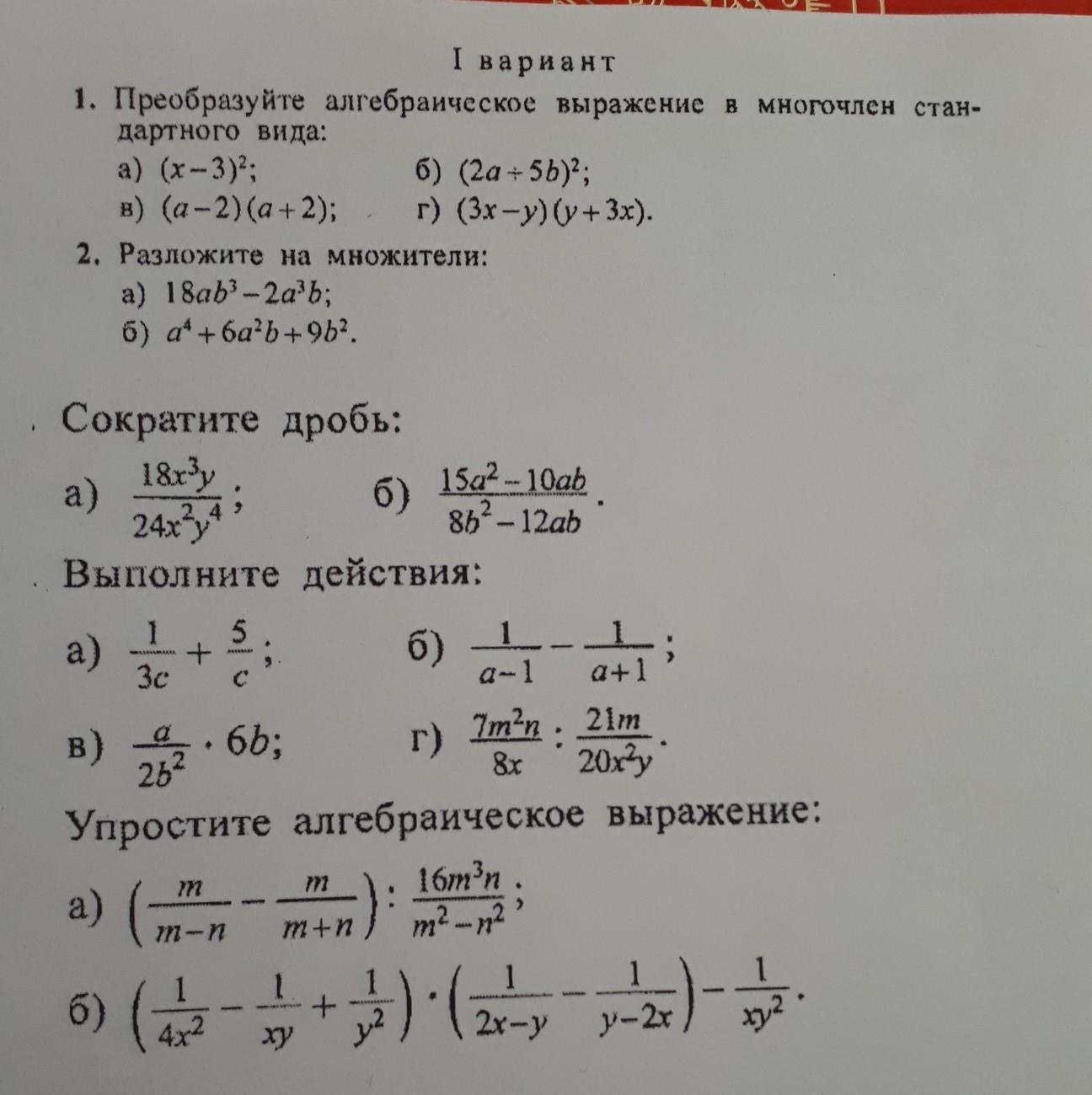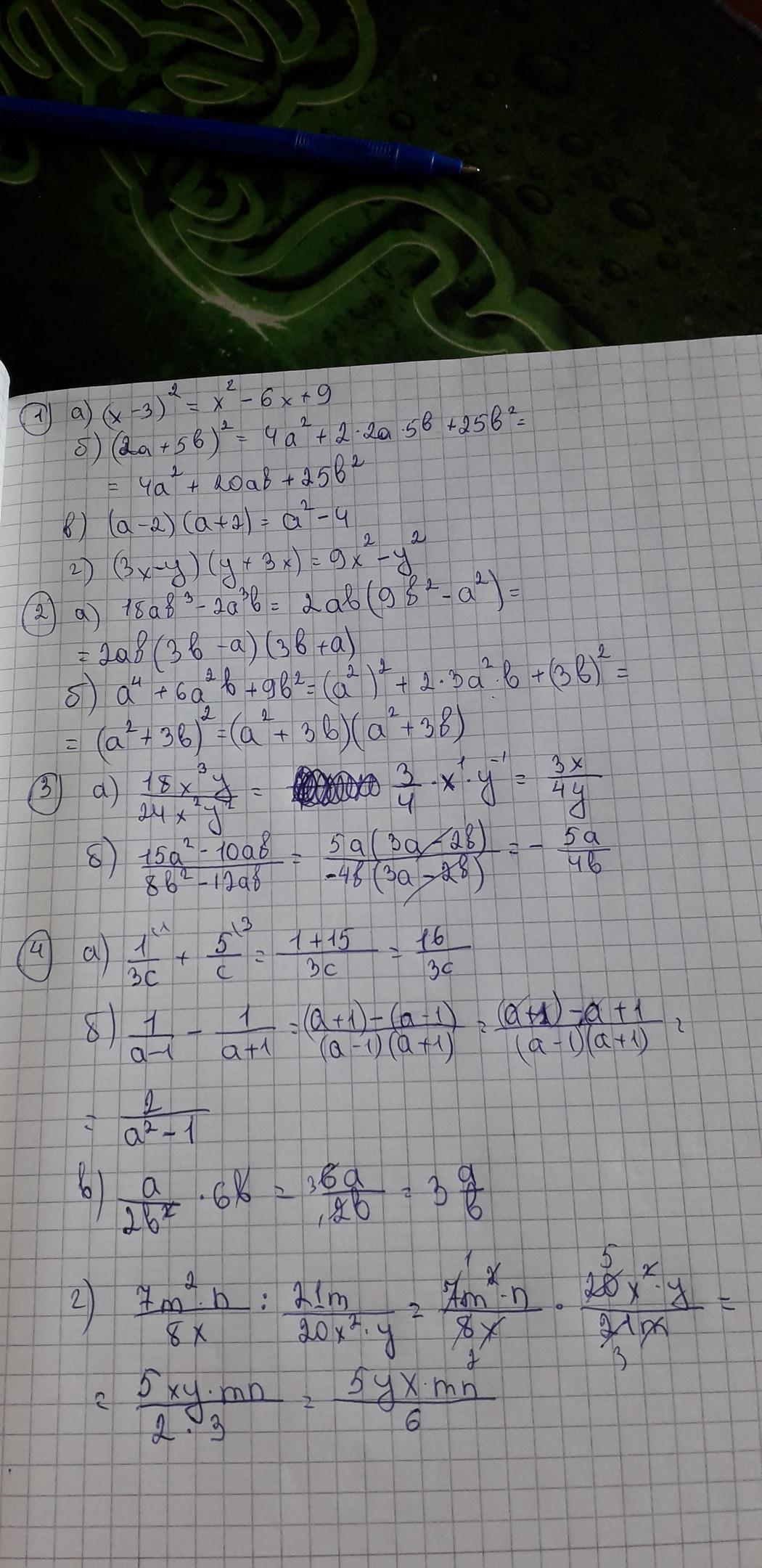 формулы сокращенного умножения. вынесение за скобку,нахождение общего знаменателя.