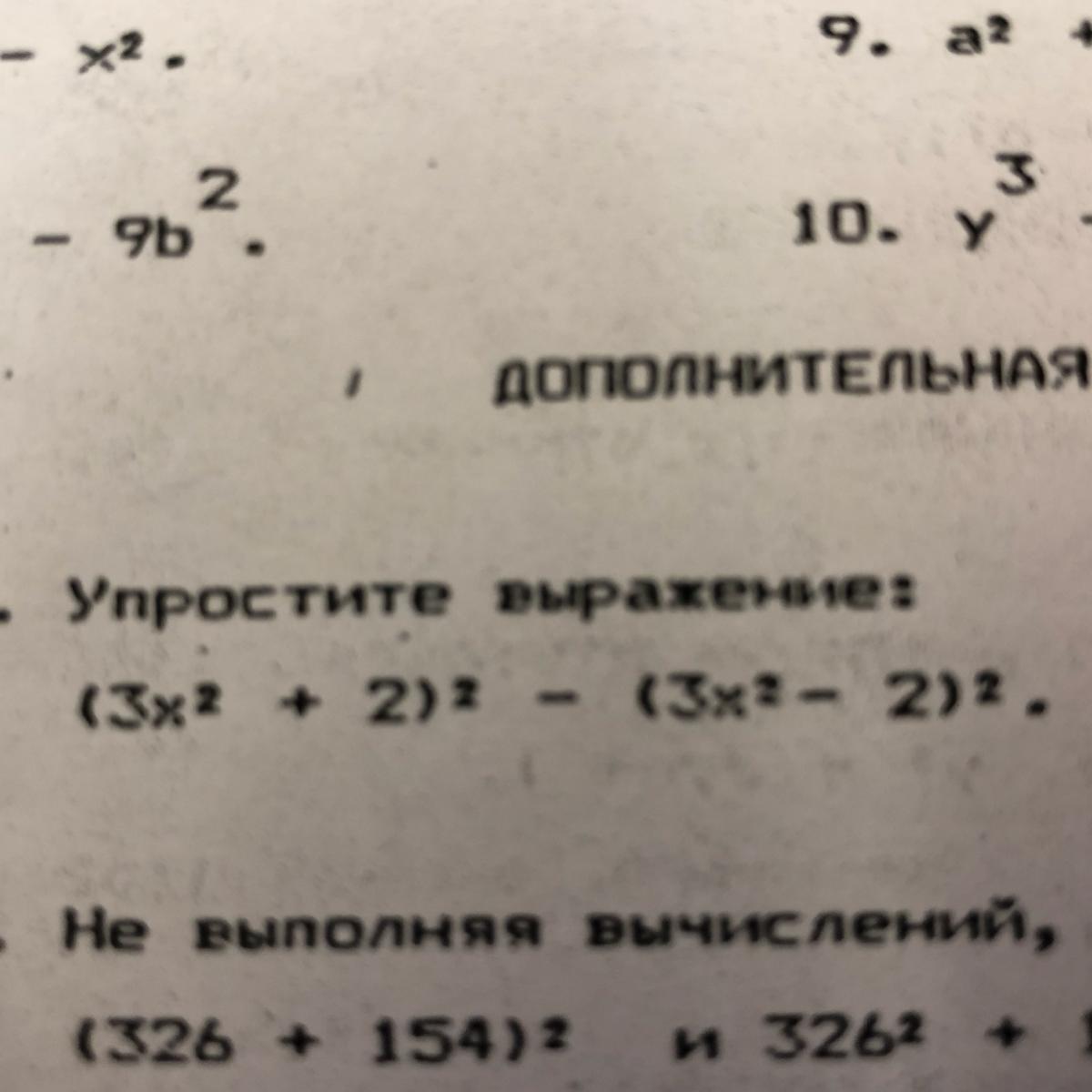 (3x^2+2)^2-(3x^2-2)^2= 9x^4+12x^2+4-(9x^4-12x^2+4)= 9x^4+12x^2+4-9x^2+12x^2-4=2×(12x^2)=24x^2