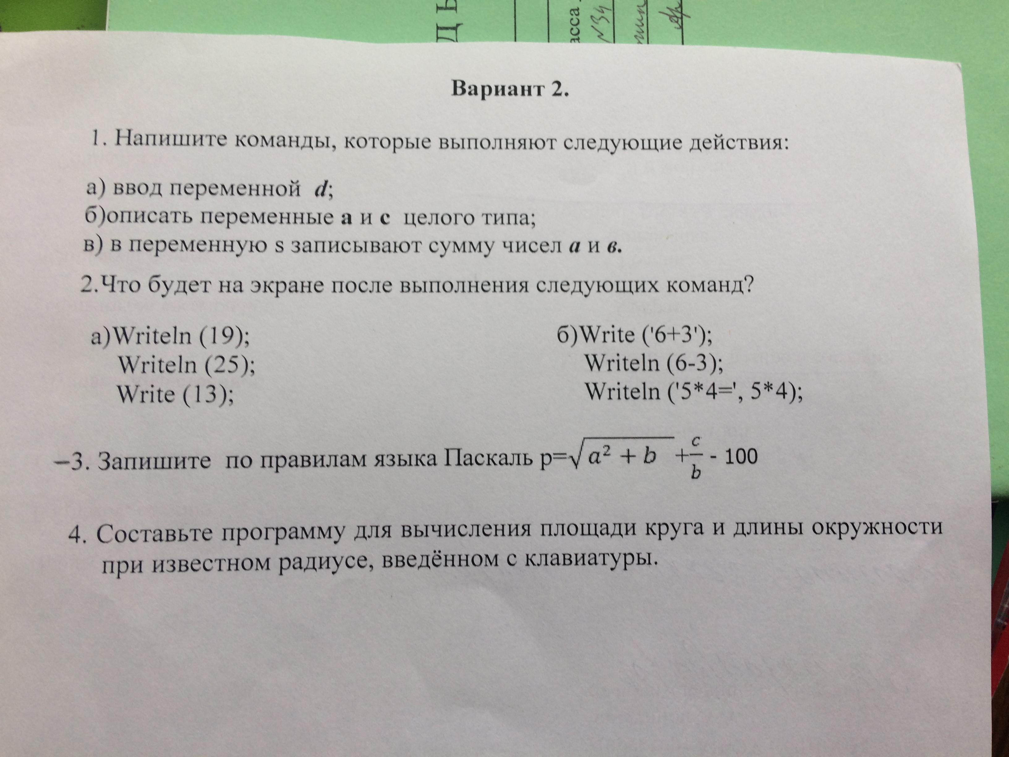 1. a. readln(d); 2. var a, e: integer; 3. s := a + b;
