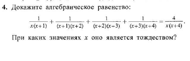 Если х≠0; х≠ -1; х≠ -2; х≠ -3; х≠ -4, тогда данное равенство является тождеством.
