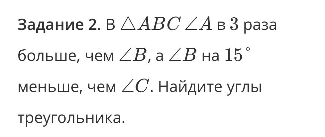 Пусть ∠В=х°, тогда ∠А=3х°, ∠С=х+15°. Сумма углов треугольника =180°. Составим уравнение: