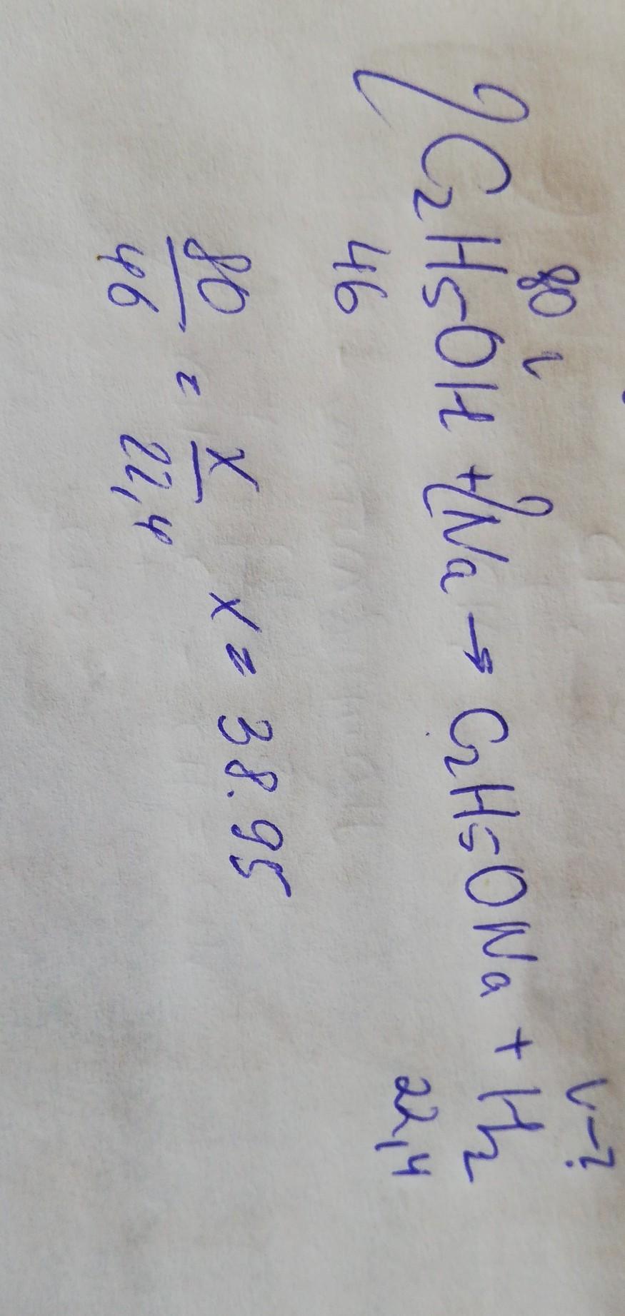 Яркий объём водню видiлиться внаслiдок реакцii з натрием и 80г етанолу?