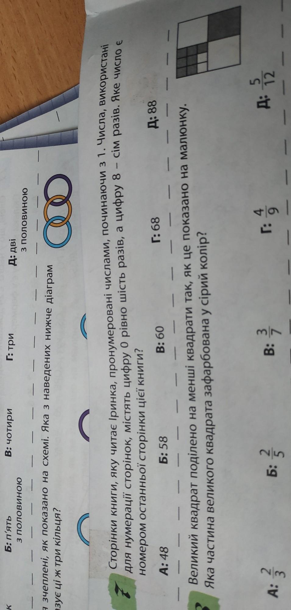 Пояснення: починаємо відлік з усіх чисел, які мають 0, тобто це виходить 10, 20, 30, 40, 50, 60 і у будь-якому випадку менше 60 сторінок бути не може. Якщо нумерація почата з одиниці (1), то перед 10 є ще 8 обов'язково. Загалом є сім вісімок: 8, 18, 28, 38, 48, 58, 68.