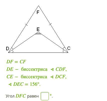 Ответ: 132. Треугольник DEC = равнобедренный. Углы EDC и ECD = (180-156)/2 = 12. Угол D = Углу C = 24.