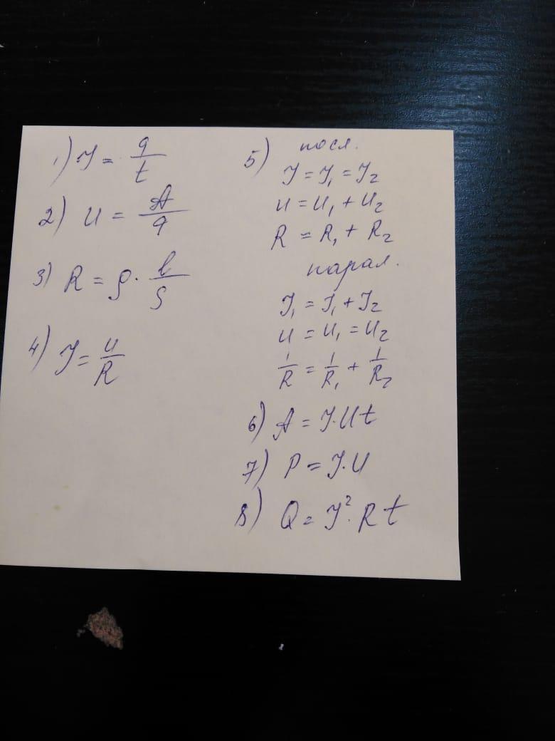 1) I = q/t - Сила тока, измеряется в Амперах (А)