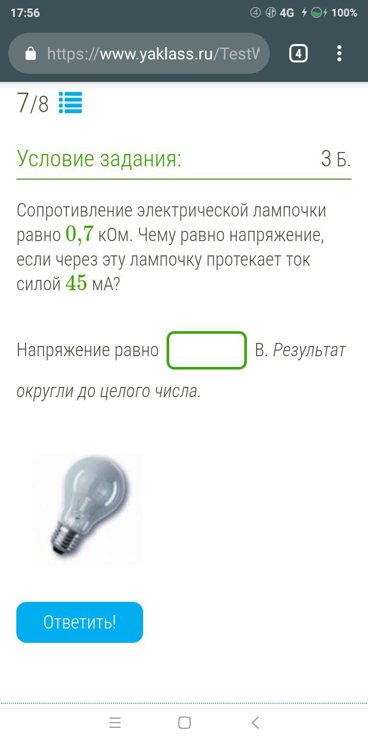 I=45 мА=0,045 А U=0,045*700=31.5 В.