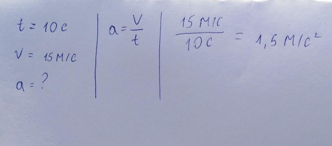 із яким прискореннням рухається автомобіль , що рушає з місця , якщо через 10с після початку руху він набуваеє швидкості 15м/с