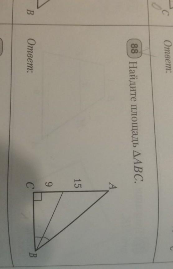 CB=9 см. AC=15+9=24. и площадь 24*9/2