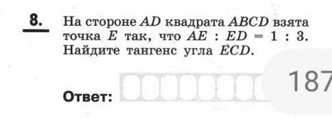 tg ECD=3/4 (сложим части и получим,что сторона квадрата равна 4)