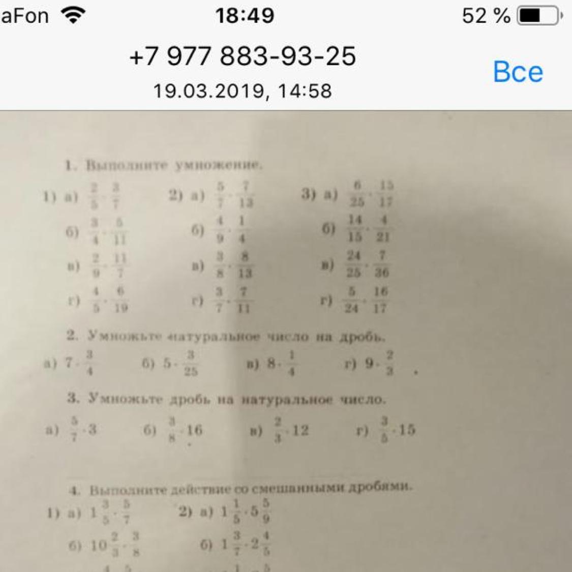 А) 7•3/4=21/4 б) 5•3/25==15/25 в) 8•1/4 =8/4=2 г) 9•2/3=18/3 =6