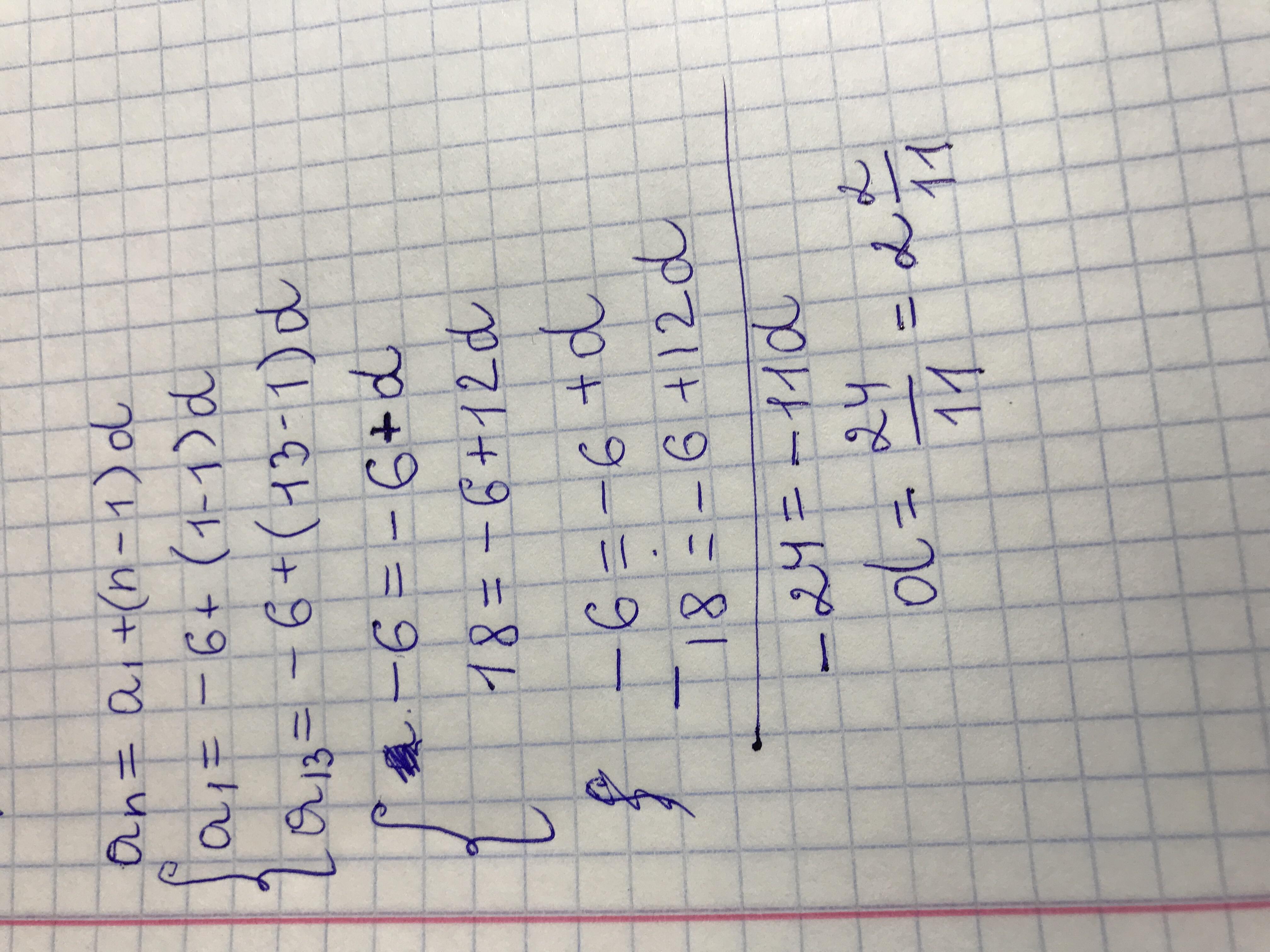 d=(an-a1)/(n-1)=(18-(-6))/(13-1)=24/12=2