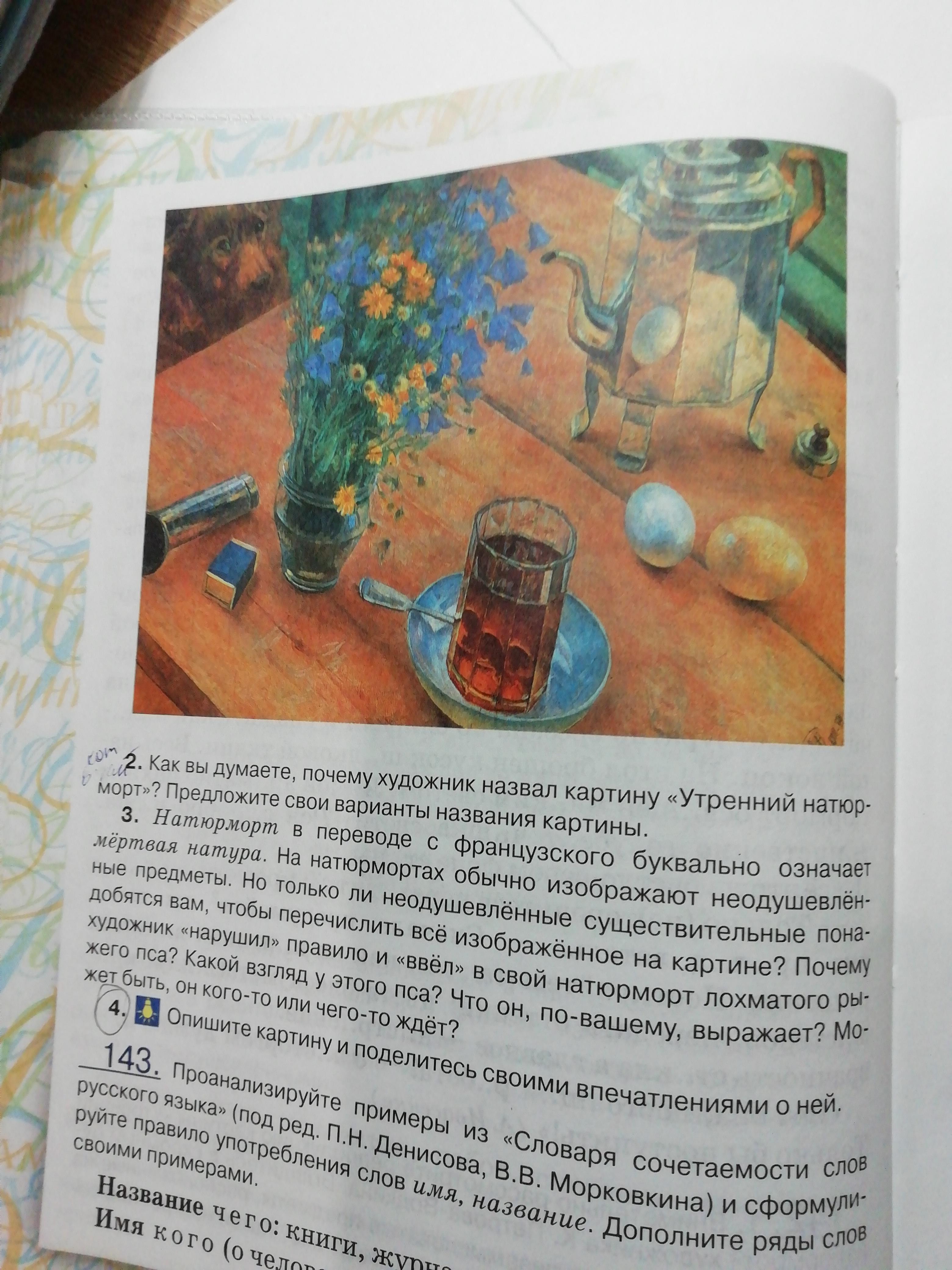 Это - картина "Утренний Натюрморт" . Для меня она очень жизненна, атмосферна.Могу рассказать обстановку. Утро, цветочки в вазе, стоящей на столе, чашка горячего чая,красивый вид,релакс и хорошее настроение. Очень красивая картина