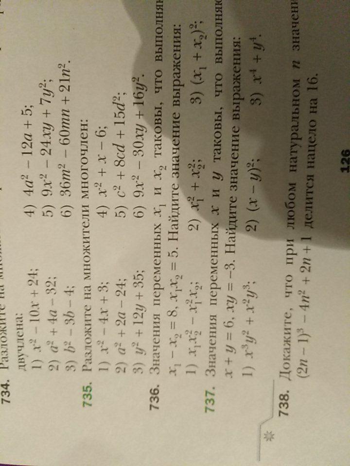 Помогите пожалуйста решить номер 735 (разложите на множители многочлен) ЗАРАНЕЕ БОЛЬШОЕ СПАСИБО