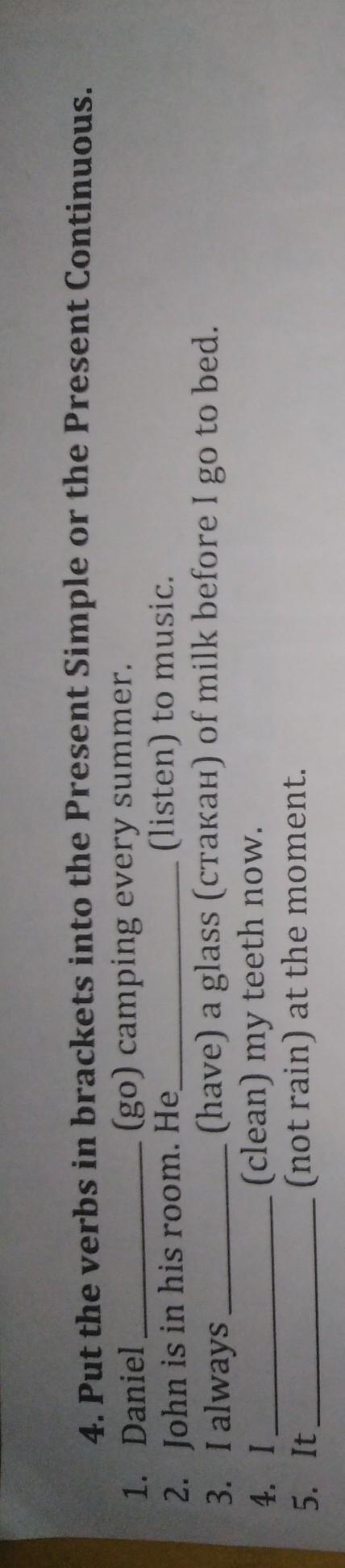 1.Goes 2.Listening 3.Have 4.Cleaning 5. It is not raining