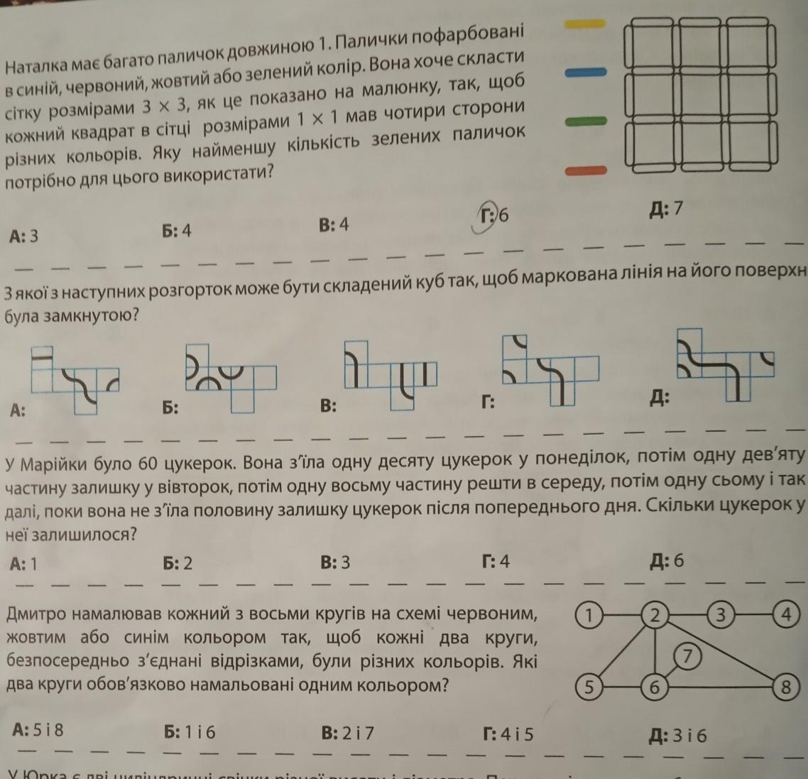 з якої з наступних розгорток може бути складений куб так, щоб маркована лінія його поверхні була замкнутою