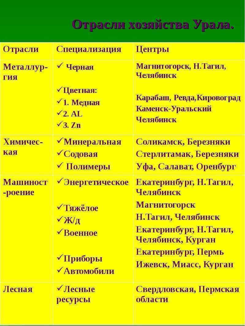 а как кратко написать саму отрасль именно Урала