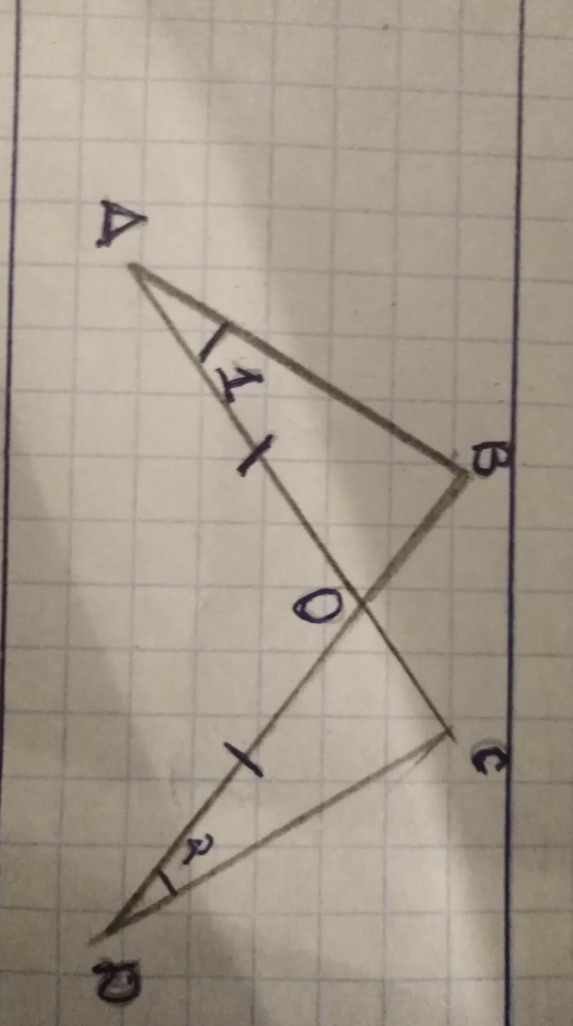 Докажем сначала, что треугольники АВО и ДСО равны. Действительно, у них ∠1=∠2/по условию/