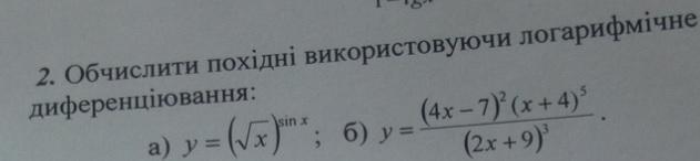 Обчисліть похідні за допомогою логарифмічного диференціювання