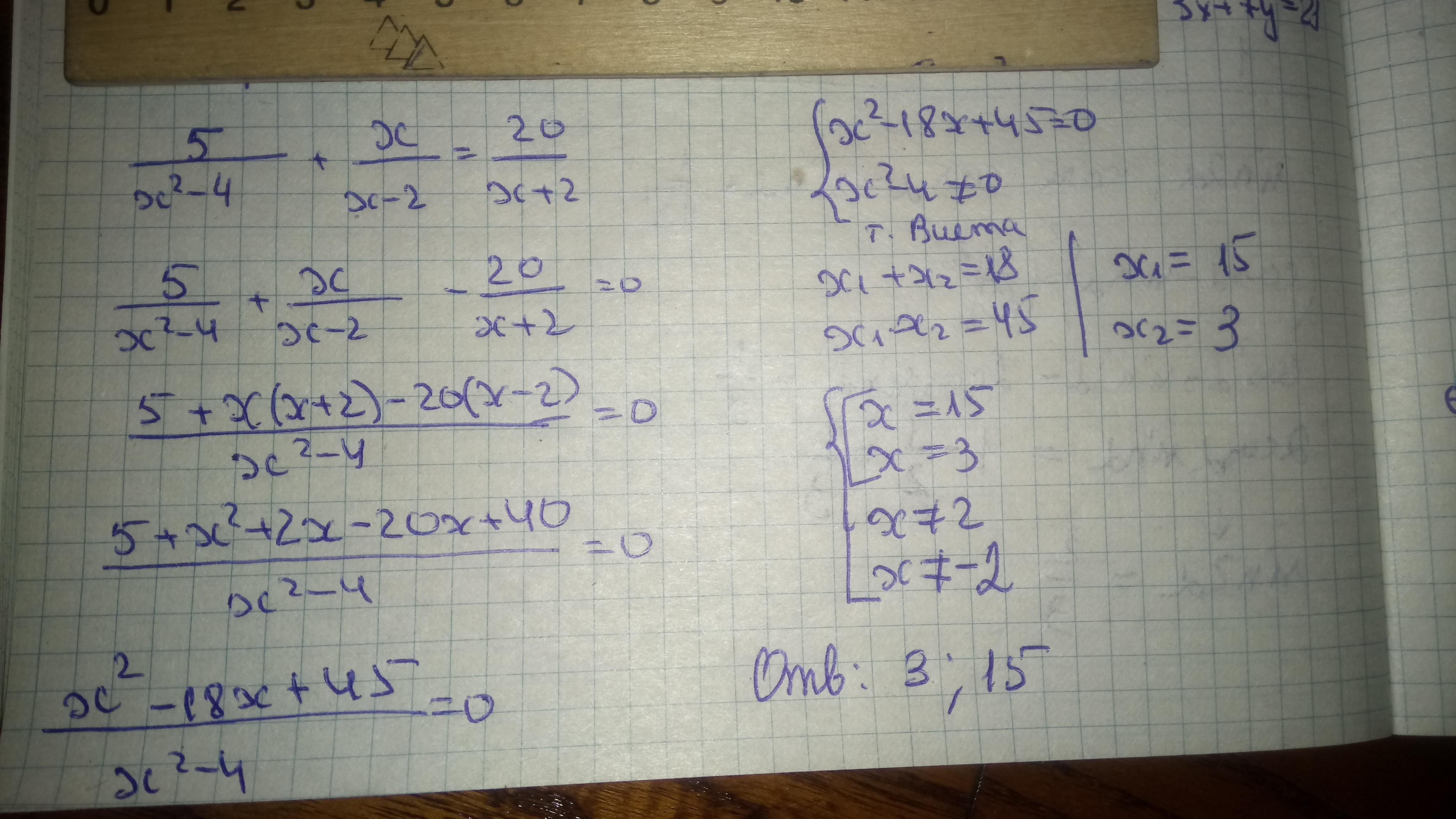 5/x2-4+x/x-2=20/x+2 срочноооо помагитеее