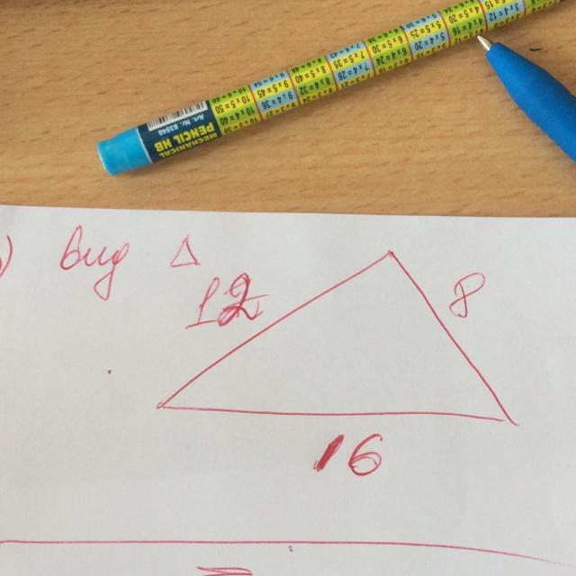 cosα=(12²+8²-16²)/(2*12*8)= -0,25 - отрицательное значение косинуса угла говорит о том, что угол больше 90° ⇒ треугольник тупоугольный.