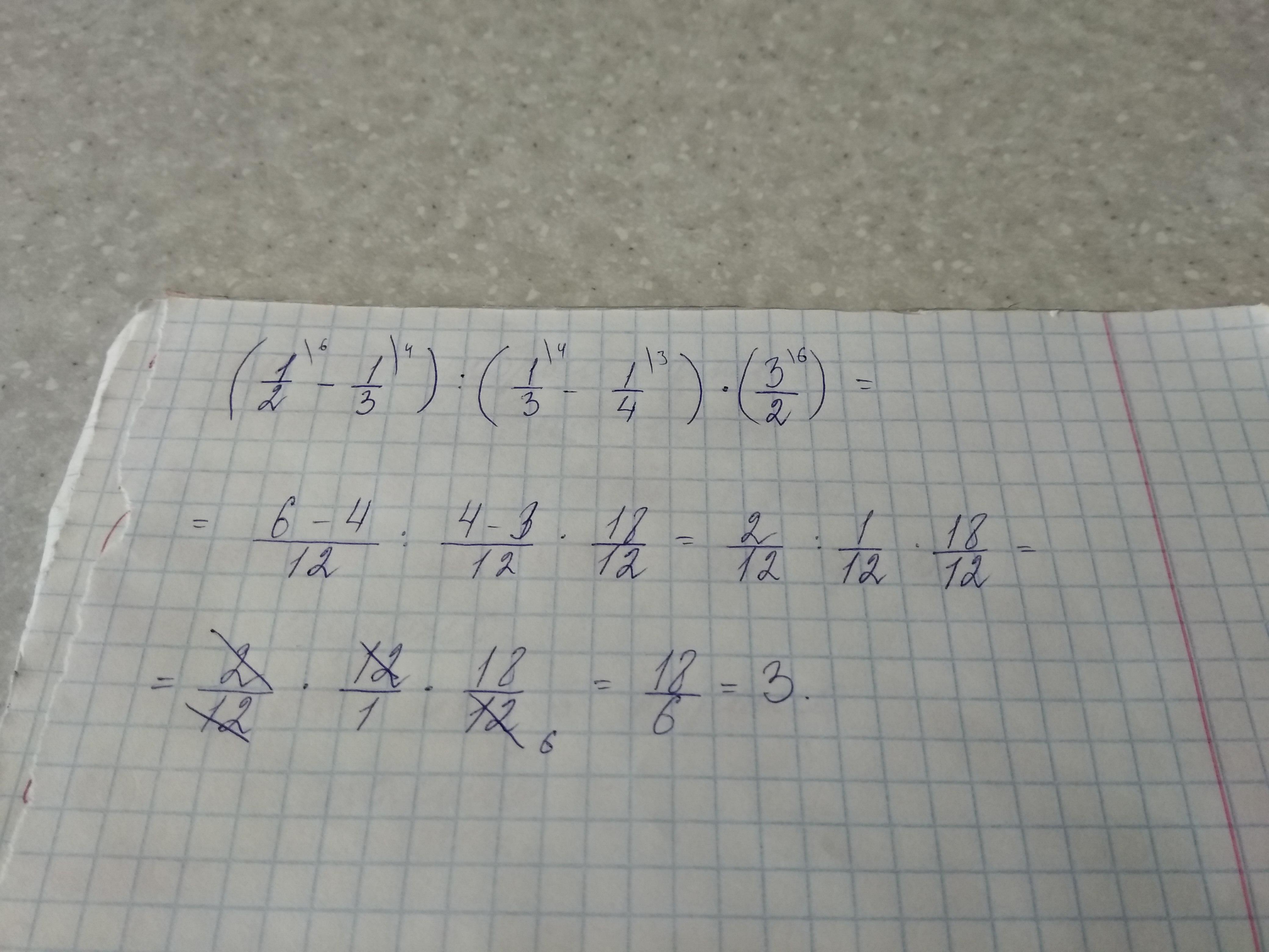 Скобочки открываются 1/2 - 1 /3 скобка закрывается разделить скобочки открываются 1/3 - 1/4 скобки закрываются умножить скобки открываются на 3/2 скобки закрывается