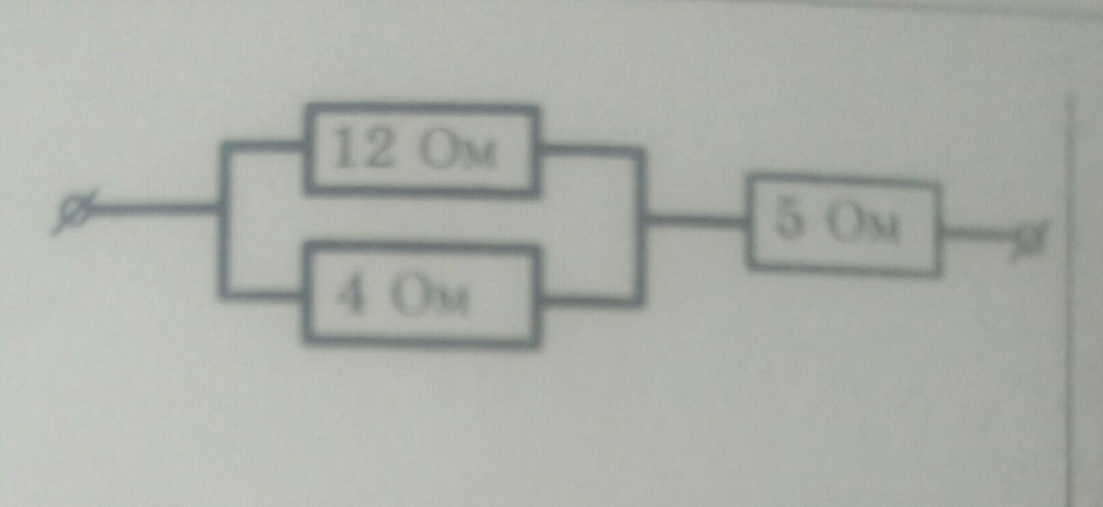 Rob=R1*R2/(R1+R2) + R3=4*12/(4+12) + 5=3+5=8 Ом