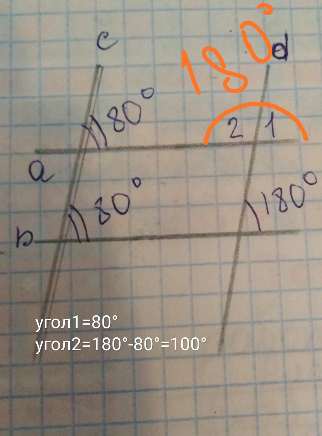 Чтобы найти угол 2, надо 180 - 80 = 100°