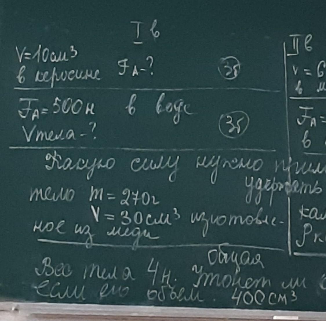1) ро.кер=800кг/м³, V=10*10^-6м³, Fa=po*V*g=800*10*10^-6*10=0.08 H