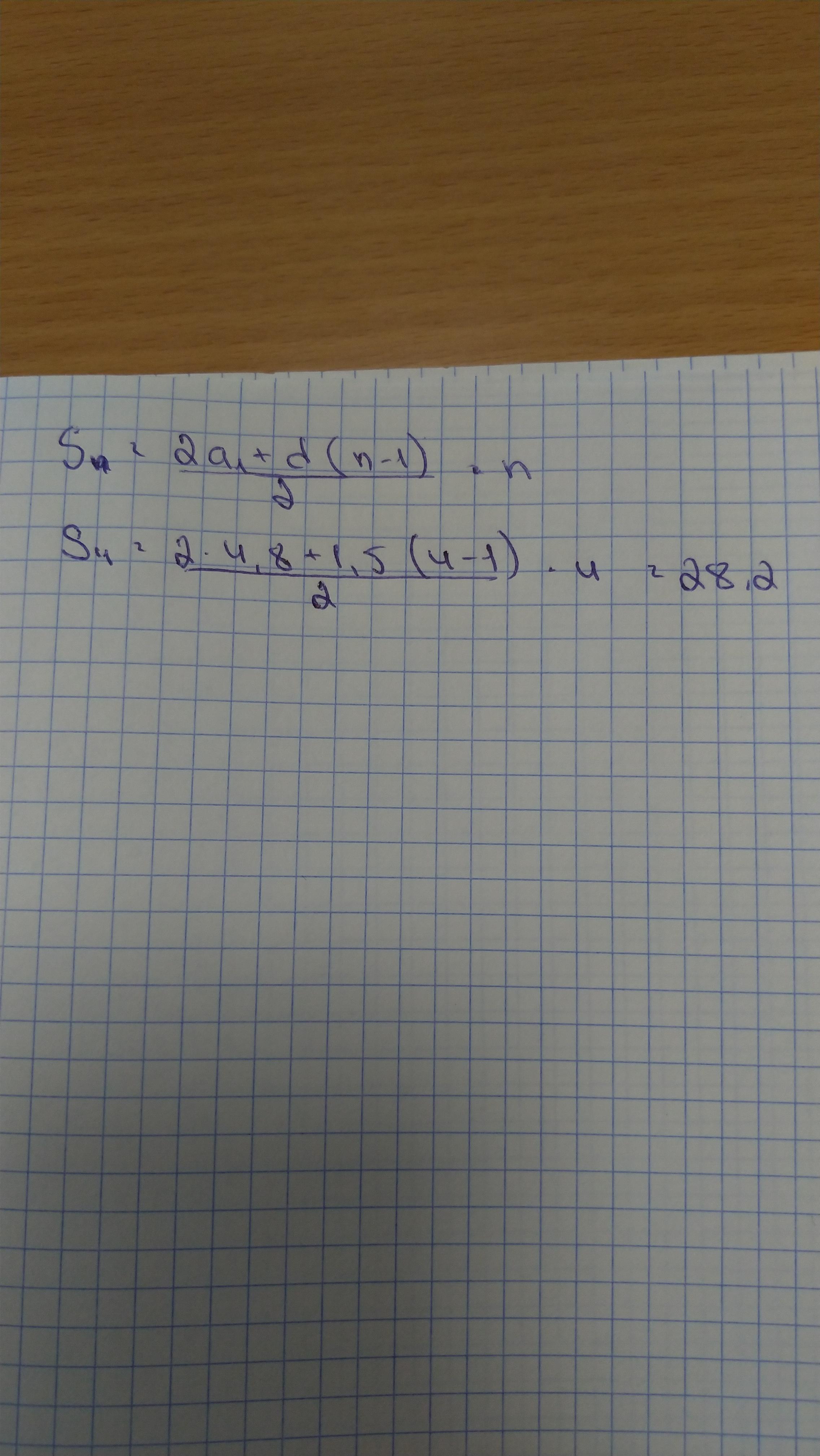 в арифметичній прогресії знайти перший член якщо а4=4,8 d=1,5 (також знайти суму чотирьох перчих членів прогресії)