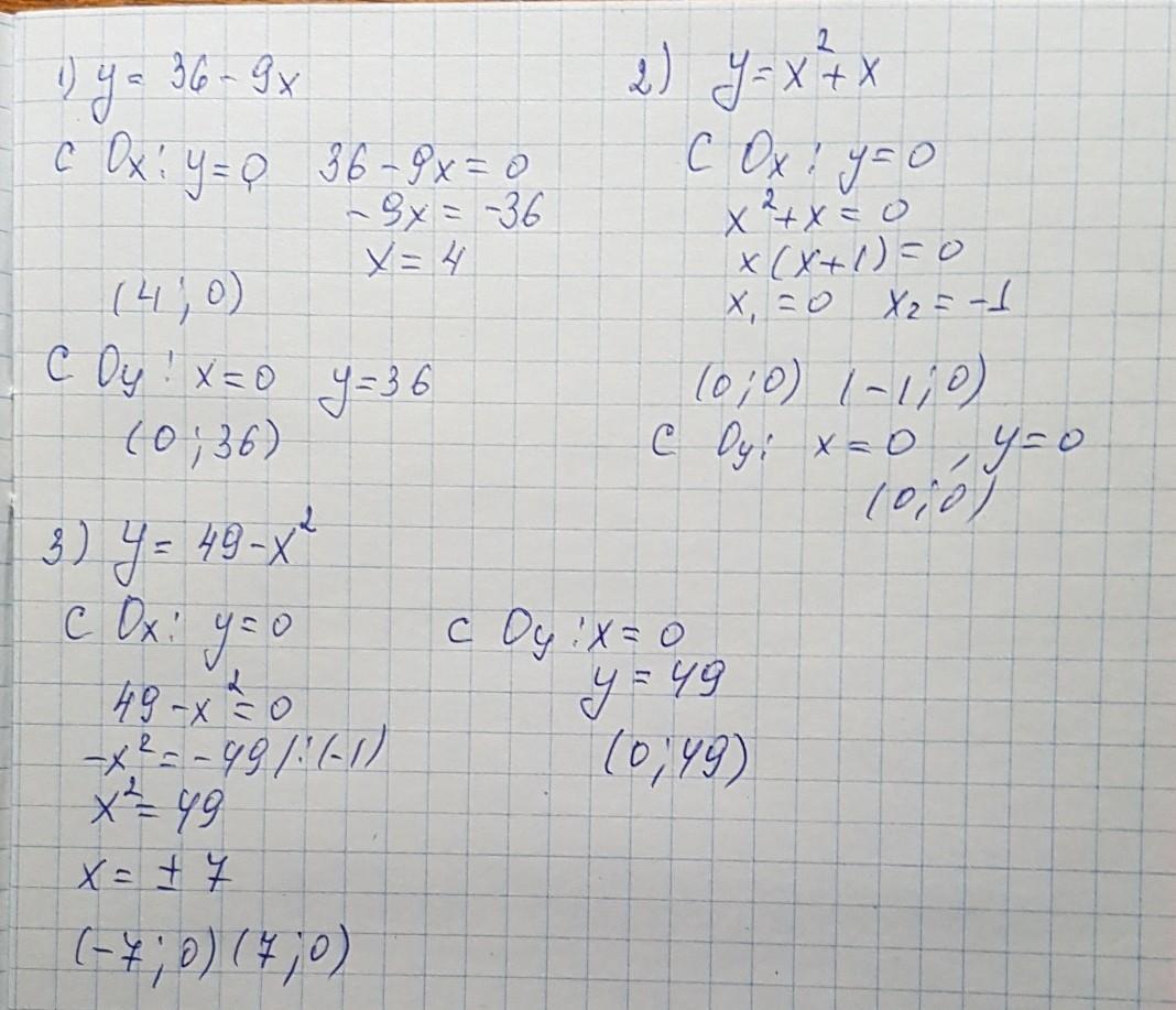 Не выполняя построения, найдите координаты точек пересечения с осями координат графика функции: