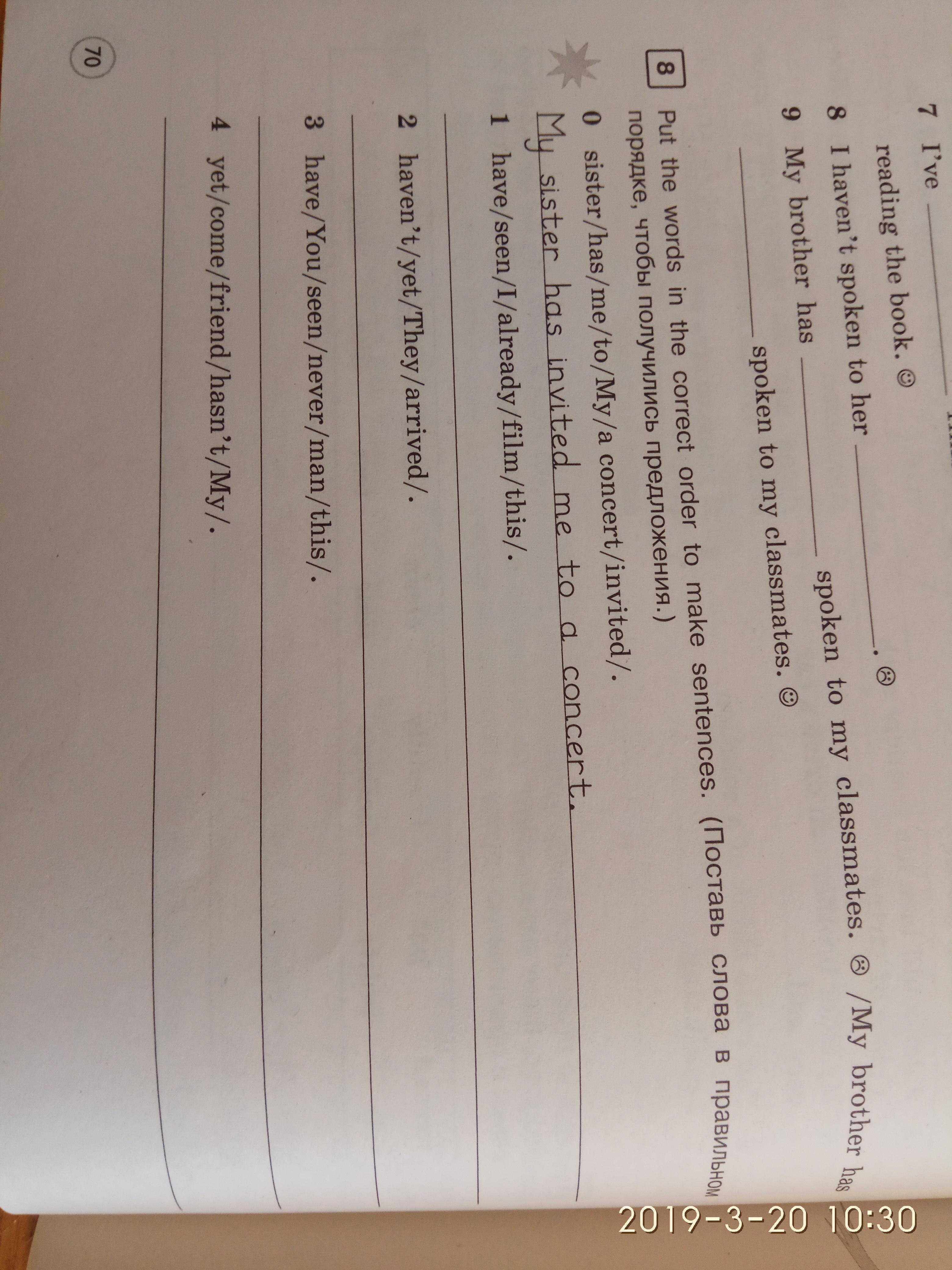 My friend hasn't come yet.