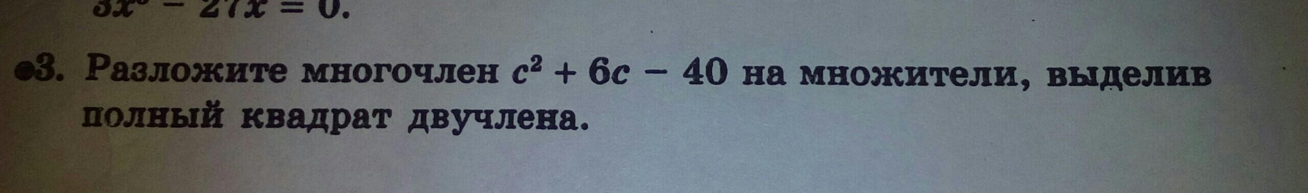 c²+6c-40=(c²+6c+9)-49=(c+3)²-7²=(c+3-7)(c+3+7)=(c-4)(c+10)